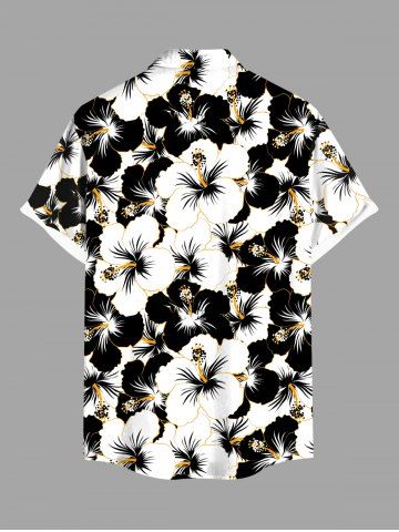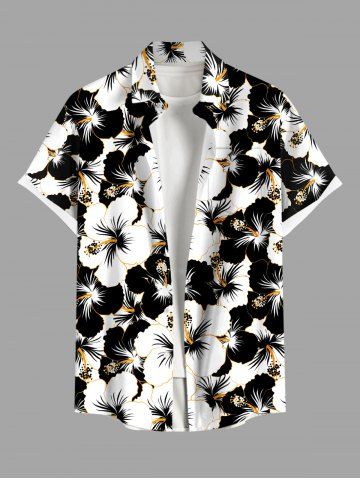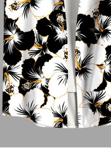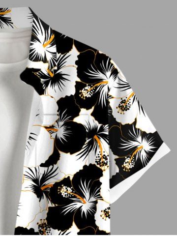Plus Size Tropical Hibiscus Flowers Print Buttons Pocket Hawaii Shirt For Men - Black - 4xl