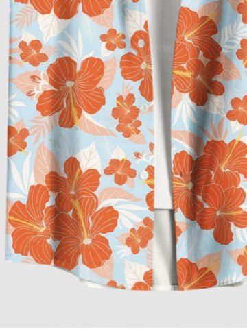 Plus Size Tropical Hibiscus Flowers Print Buttons Pocket Hawaii Shirt For Men - Orange - 5xl