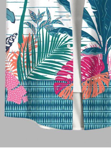 Plus Size Tropical Leaf Coconut Tree Line Print Hawaii Button Pocket Shirt For Men - Multi-a - 3xl