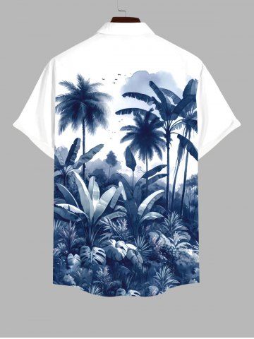 Plus Size Tropical Leaf Coconut Tree Watercolor Painting Print Buttons Pocket Hawaii Shirt For Men - Multi-a - S