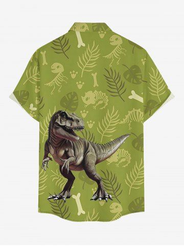 Short Sleeves Shirts > Plus Size Tropical Leaf Dinosaur Print Hawaii Button Pocket Shirt For Men