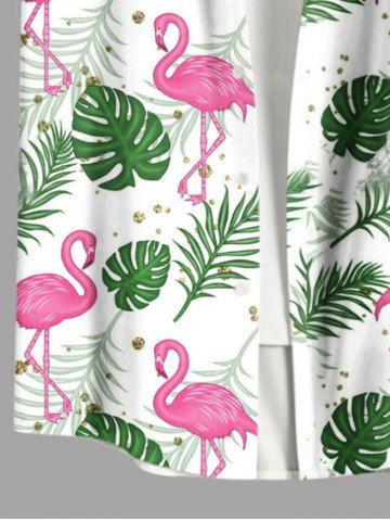 Plus Size Tropical Leaf Flamingo Print Buttons Pocket Hawaii Shirt For Men - White - 4xl