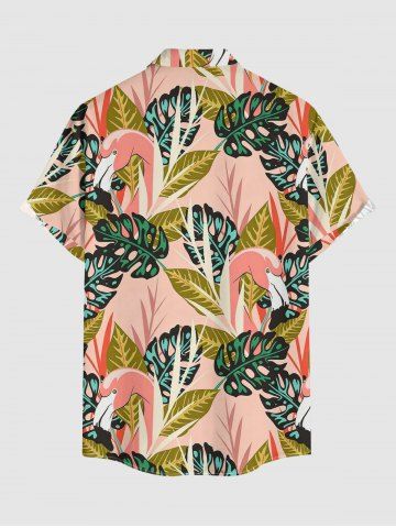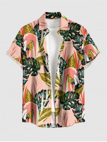 Plus Size Tropical Leaf Flamingo Print Hawaii Button Pocket Shirt For Men - Pink - S