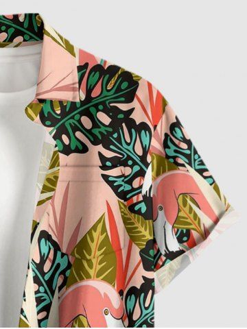 Short Sleeves Shirts > Plus Size Tropical Leaf Flamingo Print Hawaii Button Pocket Shirt For Men