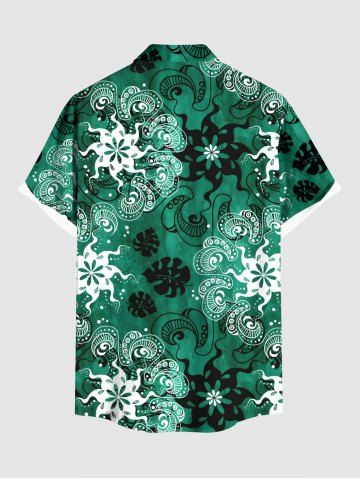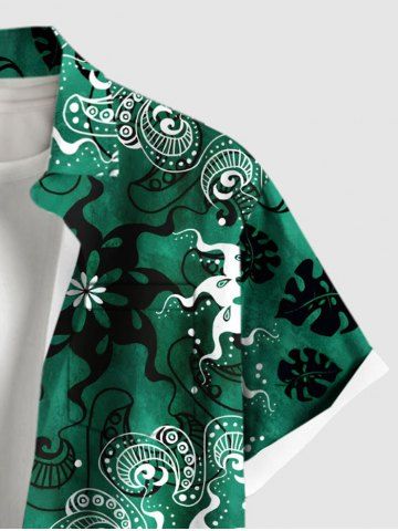 Plus Size Tropical Leaf Floral Pattern Print Buttons Pocket Hawaii Shirt For Men - Green - 2xl