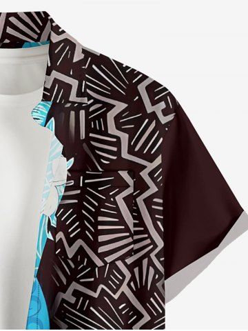 Short Sleeves Shirts > Plus Size Tropical Leaf Flower Ethnic Print Hawaii Button Pocket Shirt For Men
