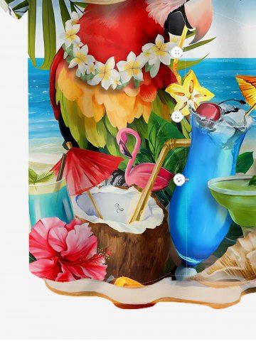 Short Sleeves Shirts > Plus Size Tropical Leaf Flower Parrot Flamingo Sea Print Hawaii Button Pocket Shirt For Men