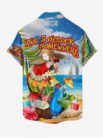 Plus Size Tropical Leaf Flower Parrot Flamingo Sea Print Hawaii Button Pocket Shirt For Men - Blue - 5xl