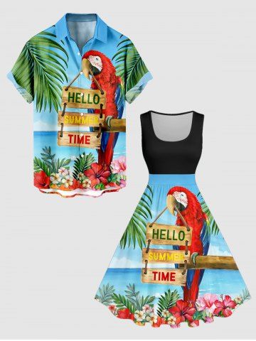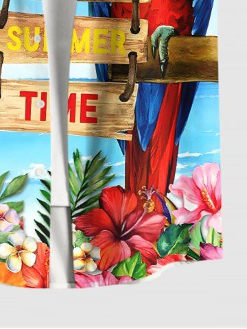 Short Sleeves Shirts > Plus Size Tropical Leaf Flower Parrot Sea Print Hawaii Button Pocket Shirt For Men
