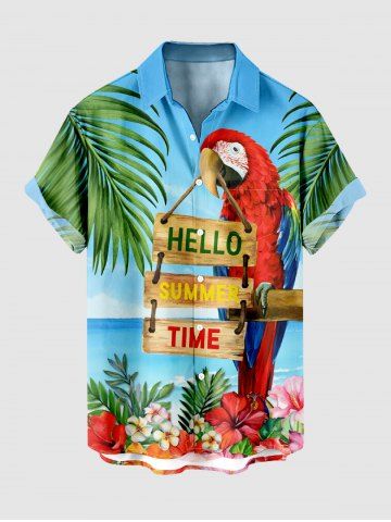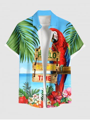 Plus Size Tropical Leaf Flower Parrot Sea Print Hawaii Button Pocket Shirt For Men - Sky Blue - 6xl