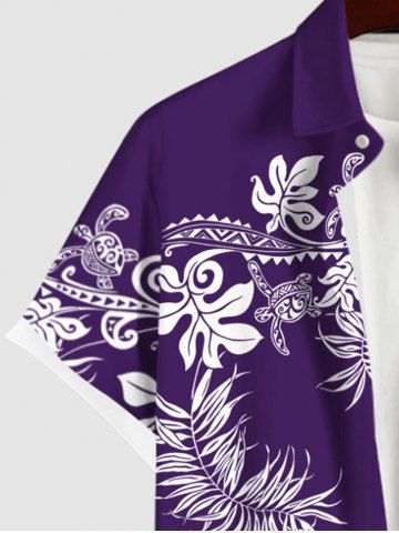 Plus Size Tropical Leaf Flower Print Buttons Pocket Hawaii Shirt For Men - Concord - 2xl