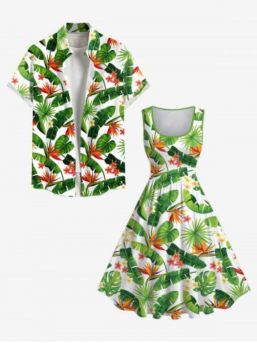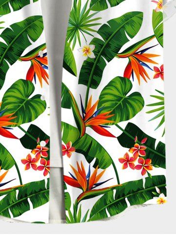 Short Sleeves Shirts > Plus Size Tropical Leaf Flower Print Buttons Pocket Hawaii Shirt For Men