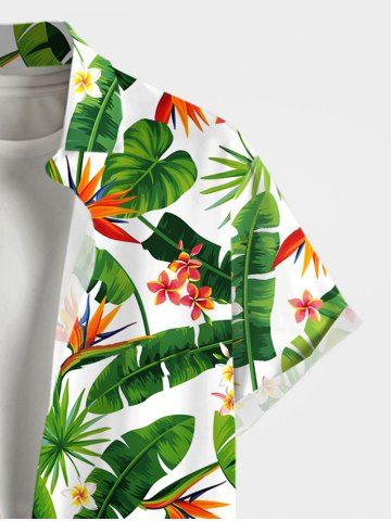 Plus Size Tropical Leaf Flower Print Buttons Pocket Hawaii Shirt For Men - Green - 6xl