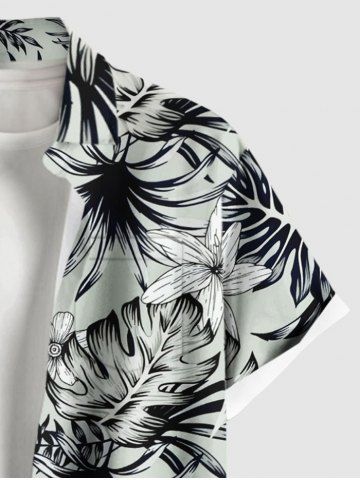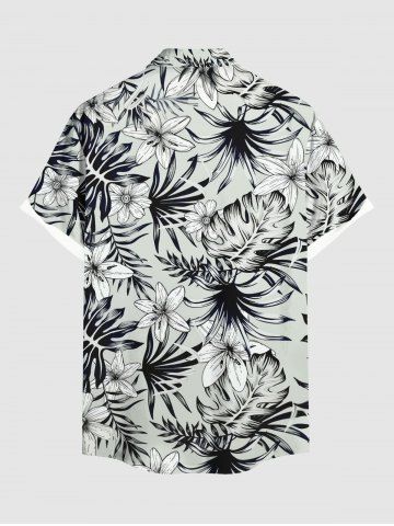 Plus Size Tropical Leaf Flower Print Buttons Pocket Hawaii Shirt For Men - Light Gray - 5xl