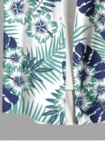 Plus Size Tropical Leaf Flower Print Buttons Pocket Hawaii Shirt For Men - Light Blue - Xl
