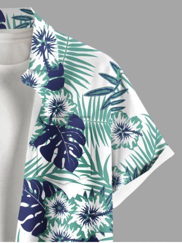 Short Sleeves Shirts > Plus Size Tropical Leaf Flower Print Buttons Pocket Hawaii Shirt For Men