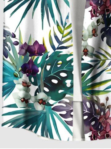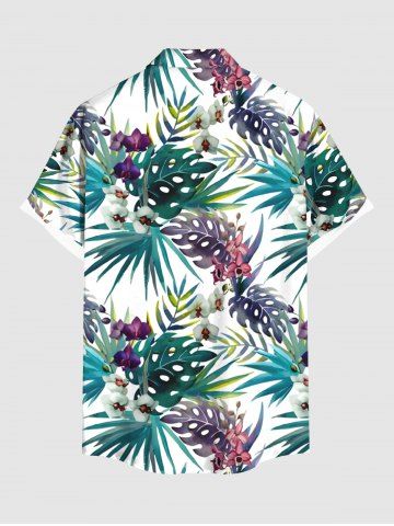 Short Sleeves Shirts > Plus Size Tropical Leaf Flower Print Hawaii Button Pocket Shirt For Men