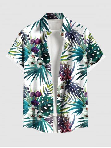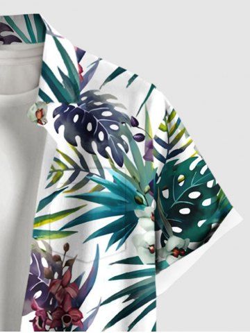 Short Sleeves Shirts > Plus Size Tropical Leaf Flower Print Hawaii Button Pocket Shirt For Men