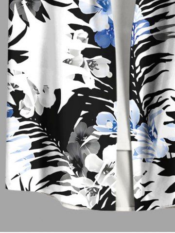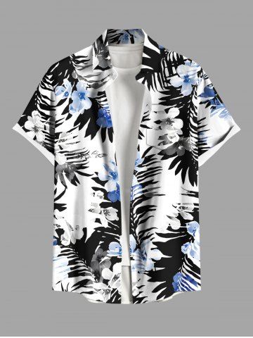 Plus Size Tropical Leaf Flower Print Hawaii Button Pocket Shirt For Men - White - Xl