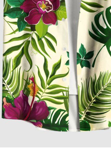 Short Sleeves Shirts > Plus Size Tropical Leaf Flower Print Hawaii Button Pocket Shirt For Men