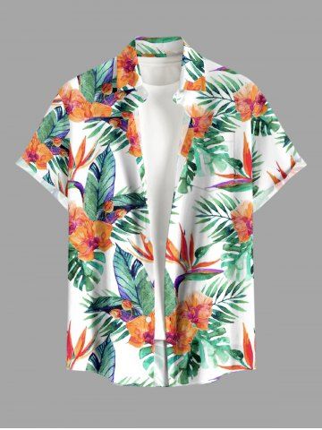 Short Sleeves Shirts > Plus Size Tropical Leaf Flower Print Hawaii Button Pocket Shirt For Men