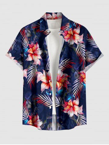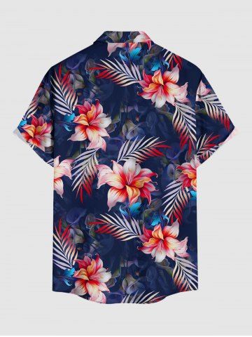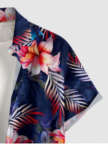Short Sleeves Shirts > Plus Size Tropical Leaf Flower Print Hawaii Button Pocket Shirt For Men