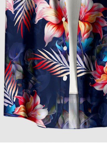 Short Sleeves Shirts > Plus Size Tropical Leaf Flower Print Hawaii Button Pocket Shirt For Men