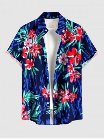Short Sleeves Shirts > Plus Size Tropical Leaf Flower Print Hawaii Button Pocket Shirt For Men
