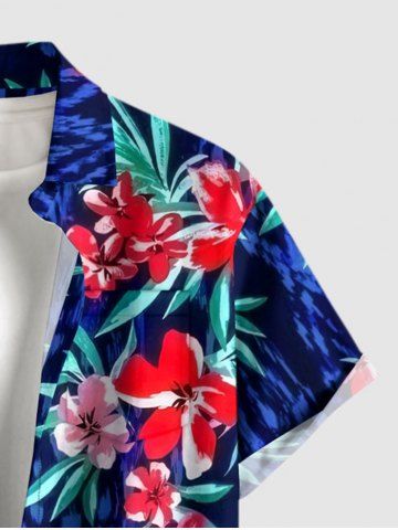 Short Sleeves Shirts > Plus Size Tropical Leaf Flower Print Hawaii Button Pocket Shirt For Men