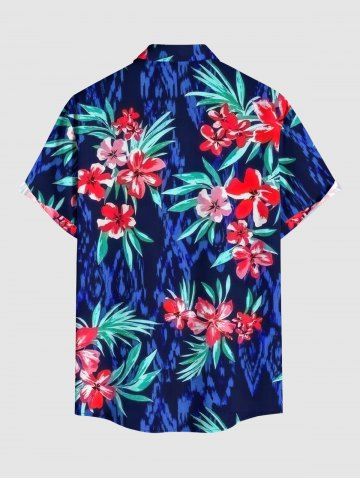 Short Sleeves Shirts > Plus Size Tropical Leaf Flower Print Hawaii Button Pocket Shirt For Men