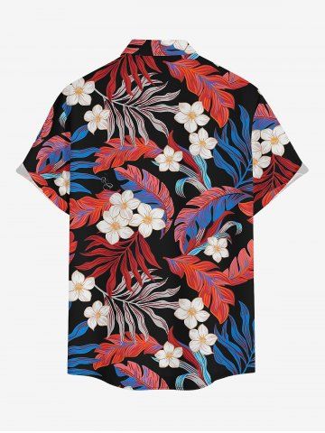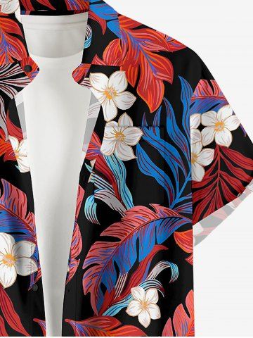 Short Sleeves Shirts > Plus Size Tropical Leaf Flower Print Hawaii Button Pocket Shirt For Men