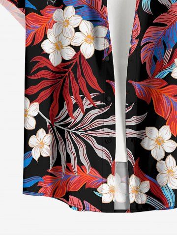 Plus Size Tropical Leaf Flower Print Hawaii Button Pocket Shirt For Men - Cherry Red - 3xl