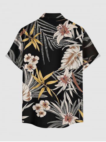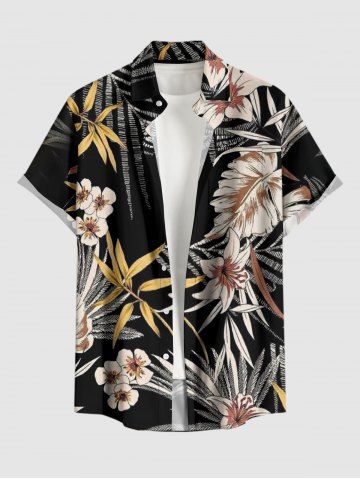 Plus Size Tropical Leaf Flower Print Hawaii Button Pocket Shirt For Men - Black - 6xl