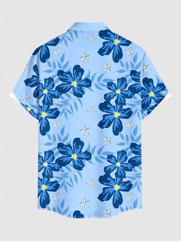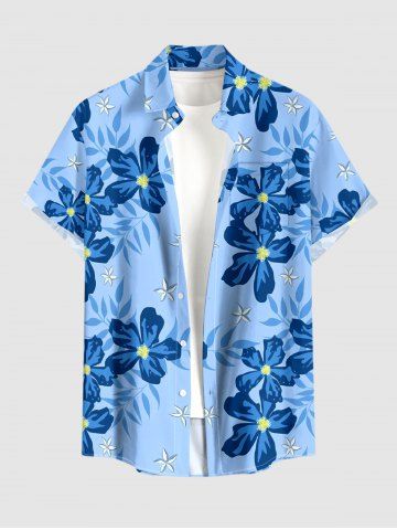 Plus Size Tropical Leaf Flower Print Hawaii Button Pocket Shirt For Men - Sky Blue - 5xl