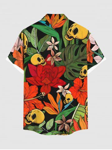 Short Sleeves Shirts > Plus Size Tropical Leaf Flower Skull Print Hawaii Button Pocket Shirt For Men