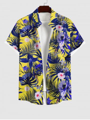 Plus Size Tropical Leaf Flowers Print Buttons Pocket Hawaii Shirt For Men - Multi-a - 4xl