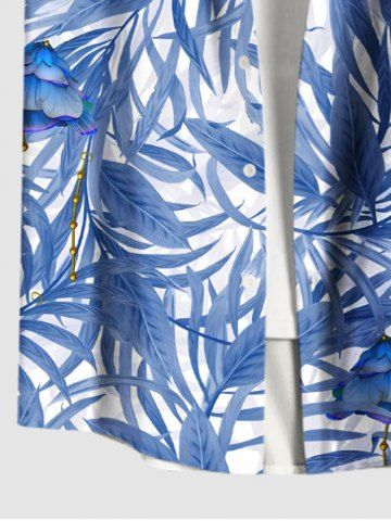 Plus Size Tropical Leaf Flowers Print Buttons Pocket Hawaii Shirt For Men - Blue - 5xl