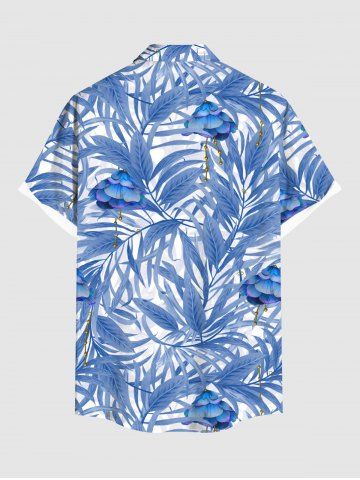 Plus Size Tropical Leaf Flowers Print Buttons Pocket Hawaii Shirt For Men - Blue - 6xl