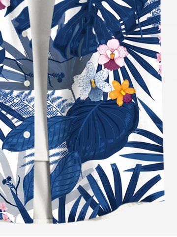 Plus Size Tropical Leaf Flowers Print Buttons Pocket Hawaii Shirt For Men - Blue - Xl