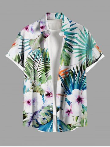 Short Sleeves Shirts > Plus Size Tropical Leaf Flowers Print Buttons Pocket Hawaii Shirt For Men