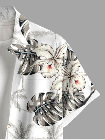 Plus Size Tropical Leaf Flowers Print Buttons Pocket Hawaii Shirt For Men - White - 6xl