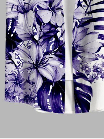 Plus Size Tropical Leaf Flowers Print Hawaii Shirt For Men - White - 3xl