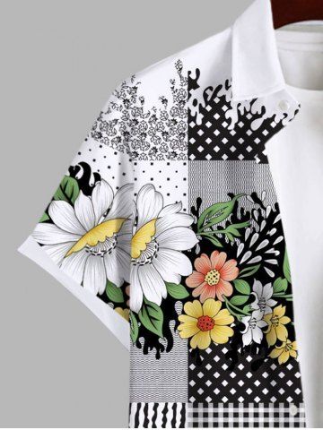 Short Sleeves Shirts > Plus Size Tropical Leaf Flowers Scarf Pattern Print Hawaii Shirt For Men