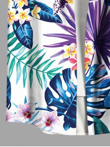 Plus Size Tropical Leaf Hibiscus Flower Branch Print Hawaii Button Pocket Shirt For Men - White - M