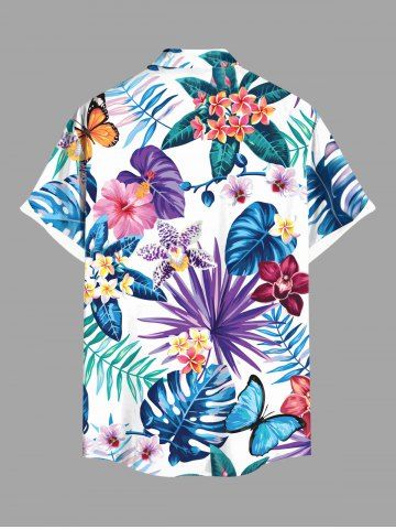 Plus Size Tropical Leaf Hibiscus Flower Branch Print Hawaii Button Pocket Shirt For Men - White - 2xl