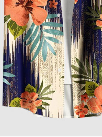 Short Sleeves Shirts > Plus Size Tropical Leaf Hibiscus Flower Ethnic Print Hawaii Button Pocket Shirt For Men