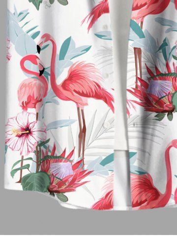 Plus Size Tropical Leaf Hibiscus Flower Flamingo Print Hawaii Button Pocket Shirt For Men - White - 5xl