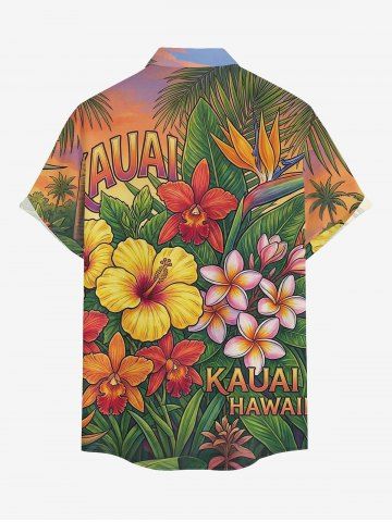 Short Sleeves Shirts > Plus Size Tropical Leaf Hibiscus Flower Letter Print Hawaii Button Pocket Shirt For Men
