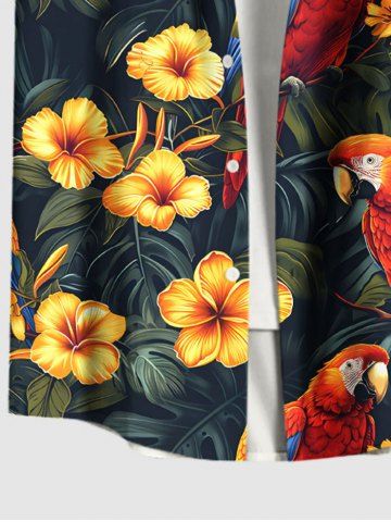 Short Sleeves Shirts > Plus Size Tropical Leaf Hibiscus Flower Parrot Print Hawaii Button Pocket Shirt For Men