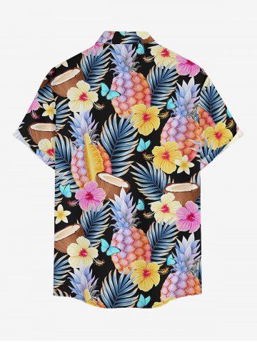 Plus Size Tropical Leaf Hibiscus Flower Pineapple Coconut Print Hawaii Button Pocket Shirt For Men - Multi - L